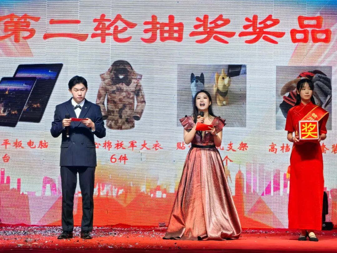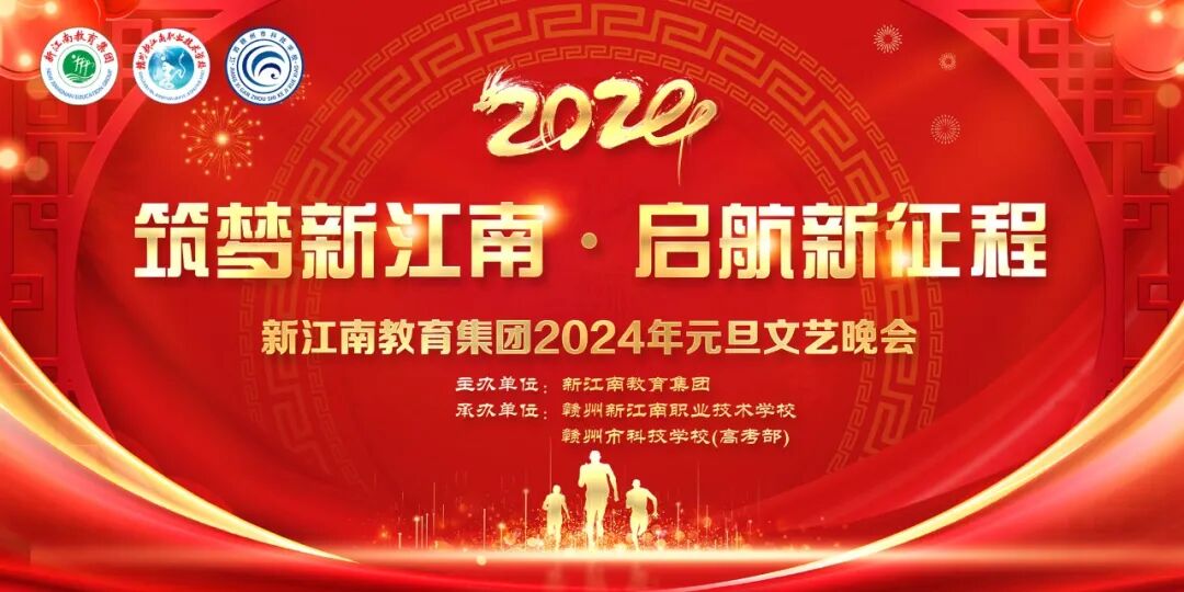 卯兔归隐,辰龙新临,光阴流转,新年将至。灿烂辉煌的2023年已成为序章,期待已久的2024年“龙”重登场。2023年12月27日晚,“筑梦新江南 • 启航新征程”元旦文艺晚会隆重举行,晚会现场热闹非凡,节目精彩纷呈,观众掌声不断! 领导嘉宾 章贡区水西镇人大副主席、公安局章贡分局水西镇派出所所长谢健、章贡区水西中学书记、校长余拔开、公安局章贡分局水西镇派出所民警、赣州新江南职业技术学校法制副校长王小峰、章贡区水西镇联三村书记郭强、副书记殷英君,赣江源商会领导陈良富、温细模、刘丰华,九江银行赣州营业部总经理肖宇、钟谢谢,江西洪城水业环保有限公司赣州市分公司总经理胡飞兵、赣州松茂电子自动化公司总经理黄运真等出席观看和指导晚会,新江南教育集团学校领导及全体师生和家长代表参加了晚会。 董事长致辞 谱新篇、贺新年,开新局、建新功。新江南教育集团董事长刘世芳先生进行了热情洋溢的晚会致词,他代表新江南教育向一直支持新江南发展的各级部门、领导、家长朋友和社会各界人士致以最诚挚的感谢!向新江南全体师生致以新年亲切的慰问!并为大家送上新年祝福! 开场节目 随着鼓声阵阵响起,同学们用他们的青春活力与激情,为观众呈现中华武术精神,抒发爱国情怀、激励奋勇前进。自信是男儿自强的源泉,坚韧不拔,方能撑起一片蓝天,开场表演犹如一把燃烧的火焰点燃了晚会现场的热烈气氛! 第一乐章 初心筑梦 你和我 【舞蹈】 你的答案 【歌曲】 勇敢表达 【舞蹈】 表演:郭霁杭、李钰涵、杨玥。 校园趣事 【小品】 飞速前进 第一轮抽奖 精彩刺激的抽奖环节,晚会准备了丰富的奖品。本轮奖品有:平板电脑、棉袄大衣、手机支架、卡通抱枕等。 第二乐章 携手共创 new boy 【小合唱】 冬日 【舞蹈】 一切都是最好的安排 【小品】 美好时刻 【舞蹈】 莉莉安 第二轮抽奖 本轮奖品:平板电脑、棉袄大衣、手机支架、高档袜子套装。 第三乐章 芳华绽放 麒麟 【说唱】 驼峰之魂 【朗诵】 以青春之名,赴时代之约 【歌曲串烧】 山海 【架子鼓】 第三轮抽奖 将爱掩藏 东方之珠 在2024年新年来临之际,师生齐动手,大家过新年,挂灯笼、写对联、做手工、拍照角……,学校广场、树上、图书馆、食堂、教室、宿舍等纷纷换上了喜气洋洋、红红火火的新年装扮,将浓浓的“新年味”带入校园,为师生送上浓浓节日祝福,烘托出了“喜庆祥和、温馨和谐”的新年氛围。 红红火火 喜迎新年 龙吟凤哕振新音,新江南学子们载歌载舞向未来呐喊,用自己特有的方式,展现青春风采,寄予美好希望。挥手2023,同过往的欢笑泪水作别;迎接2024,向前方未来的旅程进发!新的一年,让我们一起筑梦,为新江南教育谱写更加美丽的篇章!