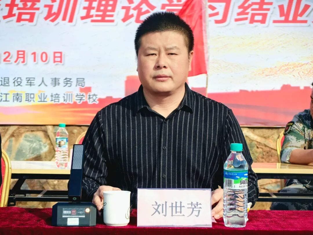 大会伊始,新江南教育集团董事长刘世芳致词,欢迎各位领导、嘉宾、企业代表的到来,对退役军人事务局一直以来的关心和支持,以及在培训期间辛勤教学和工作的老师们表示衷心的感谢,向顺利结业的全体学员表示热烈的祝贺,祝贺他们在短暂而弥足珍贵的时间里通过努力取得了优异的成绩。他表示,退役军人是我们国家的宝贵财富,为国家作出了许多贡献,付出了宝贵的青春和汗水,希望他们在今后的工作和生活中,继续发扬军人的优良传统,保持对事业的热情和奉献精神,用实际行动为国家做出更大的贡献。