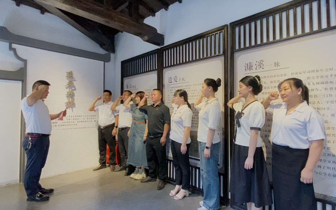 行走的党课 2024.7.23 支部党员怀着崇敬之心来到周敦颐赣州展览馆,深刻领悟和学习周敦颐崇高的人生态度以及廉洁自律的莲花精神。 在支部书记刘世芳同志的带领下,全体党员庄严肃立,重温入党誓词。铿锵有力的誓词表达了全体党员对党的无限忠诚,以及听党话,跟党走的坚定决心,同时在今后的工作和生活中将始终“不忘初心、牢记使命”,将始终践行共产党员的使命与担当。 随后,大家有序地参观周敦颐展览馆。馆内全方位展示了周敦颐的生平事迹,通过丰富多样的形式供大家学习,有生动形象的图片、引人入胜的多媒体视频、详实珍贵的文献资料、栩栩如生的人物雕塑等。党员们不仅全面了解了周敦颐的崇高品格和卓越贡献,更在对文字的详细研读中,深刻领会了周敦颐的思想精髓。尤其是他清正廉洁的为官之道和严守党纪的坚定信念,为党员们树立了光辉的典范。