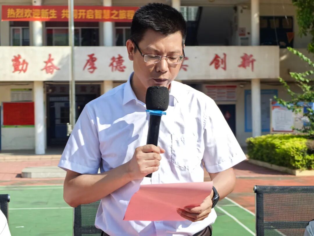 丹桂飘香开学季,乘风破浪正当时。为激励同学们振奋精神,锐意进取,以良好的精神风貌投入到新学期的学习中来,2024年9月1日,赣州市科技学校高考部全体师生在学校运动场上举行了隆重的开学典礼暨先进表彰大会。新江南教育集团董事长刘世芳、执行校长肖承理、高考部政教副校长刘林、教学副校长魏丽英、总务处主任刘世柱、办公室副主任彭莉娜及全体师生参加本次大会,会议由刘林副校长主持。