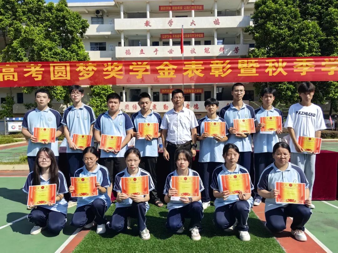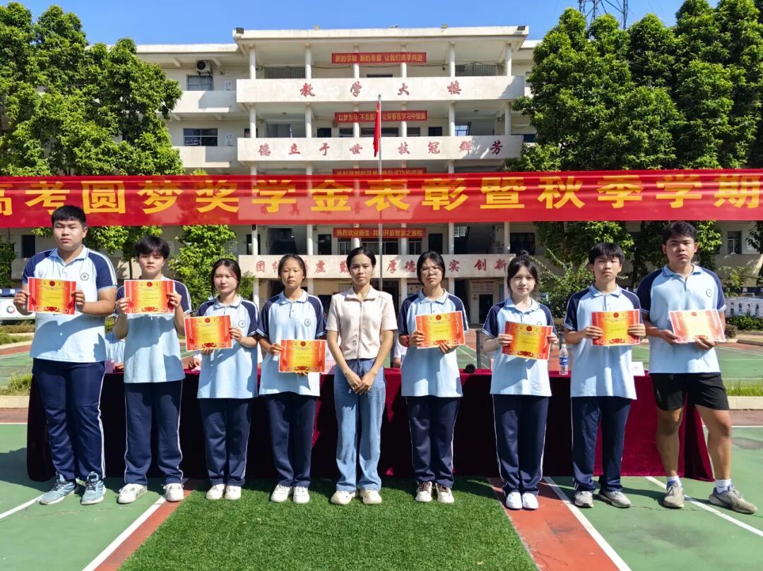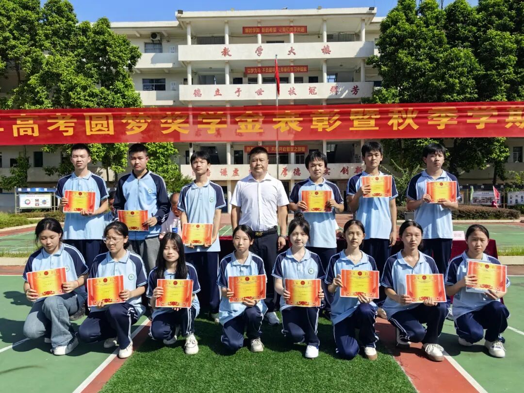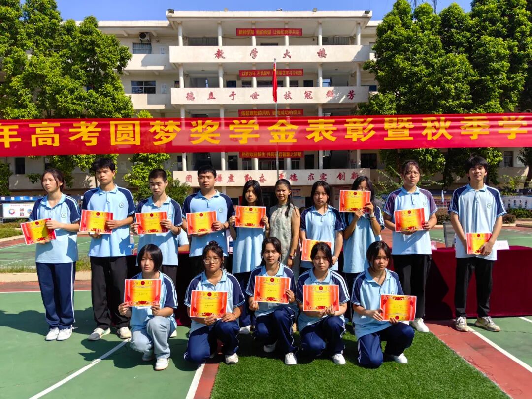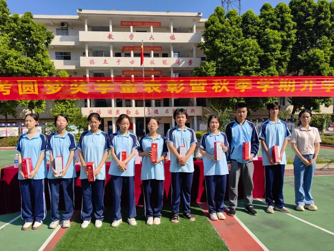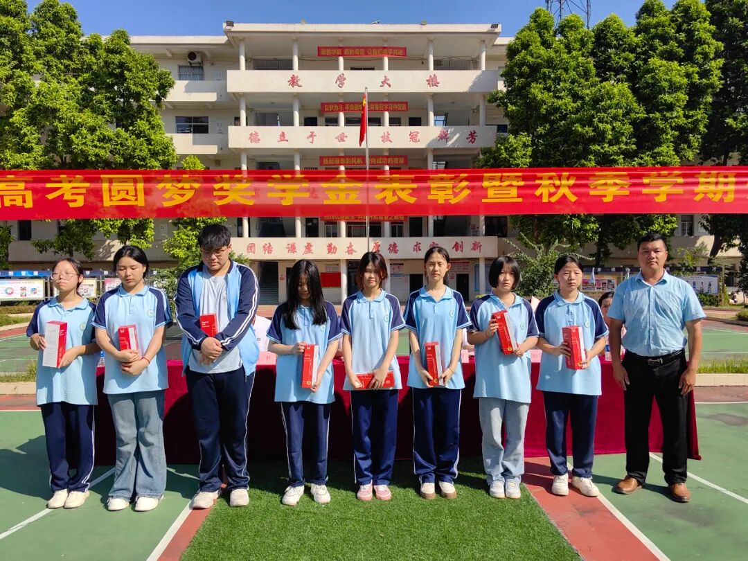 第一篇章:奏国歌,升国旗 上午8时,开学典礼在雄壮的国歌声中正式拉开帷幕,全体师生,面向国旗,行注目礼。 第二篇章:刘世芳董事长开学致辞 新学期,新希望。刘世芳董事长的致辞热情洋溢,令人振奋,为我们提出了宏伟的目标,描绘了宏伟的蓝图,吹响了冲锋的号角。他寄语莘莘学子:珍惜韶华,奋斗青春,要充分利用每一分每一秒,不断充实自己,在求知和锻炼能力中,成就最好的自己。要立大志,明大德,筑牢理想信念,勇敢承担新一代青年的社会责任和历史使命。 第三篇章:教师代表李欣萍老师发言 九苑芝兰,全凭园丁浇灌;三千桃李,尽有妙手栽培。我们学校发展到今天,离不开我们可亲可敬的老师,他们乐于奉献,以校为家;他们恪尽职守,富于创造;他们是同学们成长道路上的良师益友,为同学们的健康成长无私地播撒着阳光雨露。相信在老师的精心栽培下,同学们一定会取得优异的成绩,考入自己理想的大学。 第四篇章:考上本科的2021级毕业生肖芬家长代表发言 肖芬家长对学校和老师给予孩子的悉心培养表示诚挚的感谢。她说孩子的成长需要家长、老师和同学的共同努力,肖芬在学校的三年,学校和老师给予了她许许多多的教育、帮助和关爱,让她能够顺顺利利地成人成才,实现心中的理想。 第五篇章:考上本科的2021级毕业生谢翔同学发言 谢翔同学对学校和老师的谆谆教诲和无微不至的关心表示衷心感谢,感谢老师三年的陪伴和培养,让他从一个普通高中的落榜生,实现了考上一本大学的梦想。他还嘱咐学弟学妹们在新的学期里,要保持高度的学习热情,努力拼搏,实现心中理想。 第六篇章:2022级曾馨仪同学代表发言 走进高三,我们脚步铿锵,不再迷茫;走进高三,我们志在四方,风雨直闯;走进高三,我们为圆梦而奋斗。在此,希望同学们及时当勉励,无惧过往,不畏将来,坚定信念,用智慧和汗水去实现自己心中的理想。 第七篇章:2024级新生叶宇桐同学代表发言 人生的紧要处只有几步,特别是人年轻的时候。高中是人生的奠基期,三年统筹、重在高一。良好的开端是成功的一半,这些都道出了高一年级学习的重要性。高一新生的到来,为高考部这个大家庭带来了新的生机和活力。你们怀抱梦想,憧憬未来,愿你们迈好青春第一步,尽快适应新的学习生活。 第八篇章:表彰 回首来路,拼搏不息,奋进途中,莫负华年。在过去的半年时光里,我校涌现出一批卓越学子,他们是求知的典范、前行的楷模。 执行校长肖承理为优秀学生颁奖 魏丽英副校长为优秀学生颁奖 总务处主任刘世柱为优秀学生颁奖 办公室副主任彭莉娜为优秀学生颁奖 同学们,有耕耘就有收获,你们成长的历程中播下的每一粒种子,都将长成参天大树;你们前进的路途上洒下的每一滴汗水,终将会汇入成功的海洋。老师们,育人的事业风光无限,我们的未来前程似锦。风正潮平,自当扬帆破浪;任重道远,更须快马加鞭。追风赶月莫停留,平芜尽处是春山!新学期,新气象,新征程。相信高考部全体师生会在接下来的每一个日子里,脚踏实地,不辍奋进,以赤子之心为时光赋予能量,书写未来美好华章!
