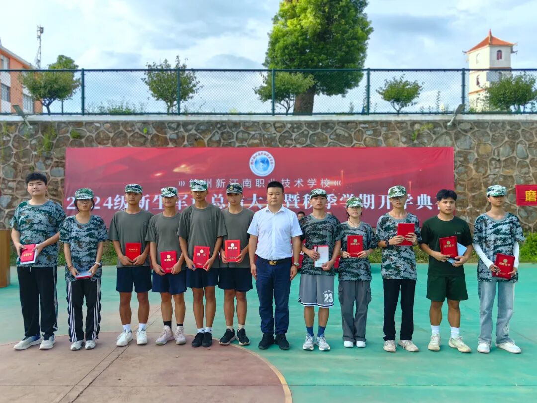 金色九月,秋风送爽。9月7日,赣州新江南职业技术学校2024秋季学期军训总结大会暨开学典礼隆重举行。集团董事长刘世芳、副董事长杨美红、执行校长肖承理、水西派出所所长兼法治副校长谢健、副校长陈小青、安全指导员卢海涛、校长助理冯李平及全体新生参加了本次大会。