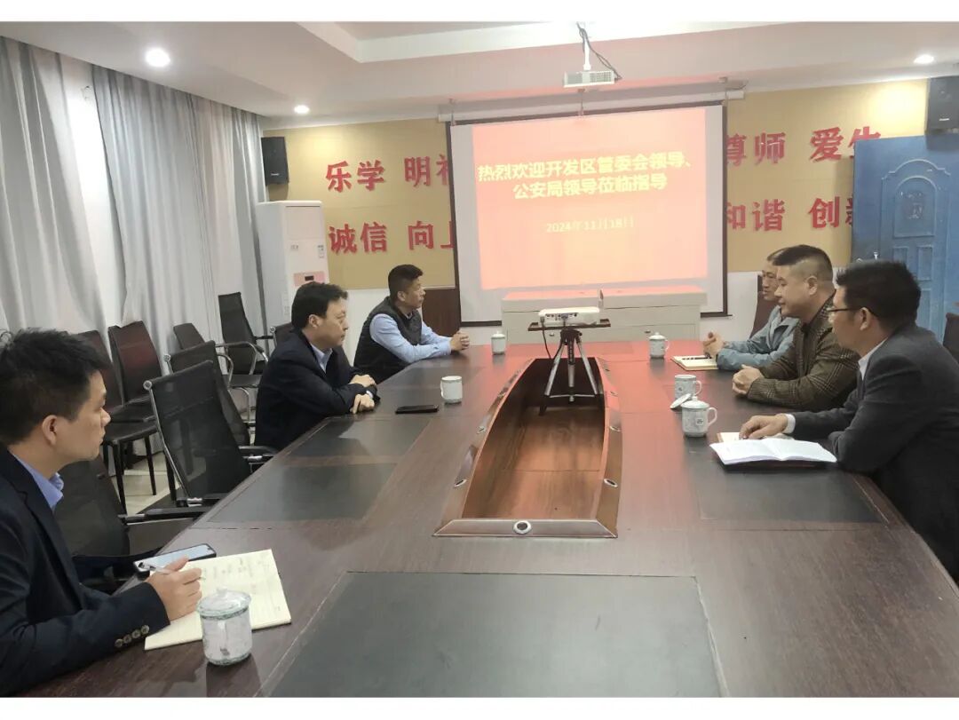 在刘世芳董事长的陪同下,赣州经开区管委会副主任、公安分局党委书记、局长黄晓明一行参观了我校校园。 座谈会上,刘世芳首先代表学校向赣州经开区管委会副主任、公安分局党委书记、局长黄晓明一行的到来及公安系统长期以来对我校安全工作的大力支持表示衷心的感谢,并向黄晓明一行详细介绍了我校的办学情况和校园安全稳定工作情况等。 黄晓明对我校的办学成绩和校园安全防范措施、安全管理制度、智慧安防建设等给予了充分的肯定。同时强调,要进一步加强校地联防工作,紧密联系,形成合力,全力推动平安校园建设迈上新台阶。 我校始终把安全工作放在工作首位,高度重视校园安全工作,不断完善安全工作机制,构建安全防控体系,时刻紧绷安全这根弦。我校将进一步加强安全稳定等方面的工作,为师生创造一个安全、和谐、稳定的校园环境。