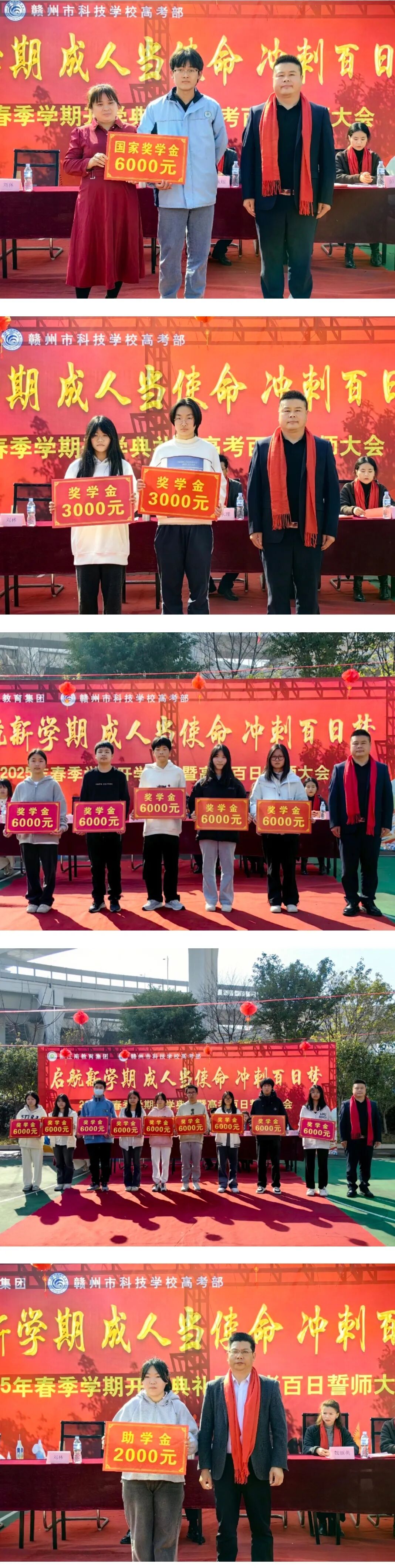 大会还对2024年秋季优秀学生、拥军优属学生、获得助学基金的学生、入学奖学金学生以及国家奖学金获得者进行了表彰。校领导们为获奖同学颁发了荣誉证书和奖品,激励全体同学以他们为榜样,努力拼搏,追求**。