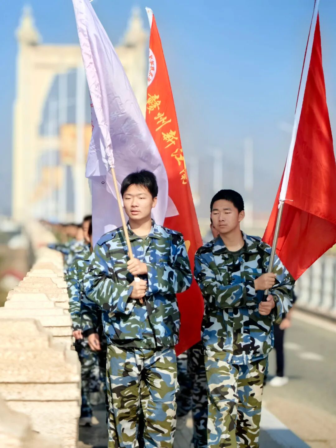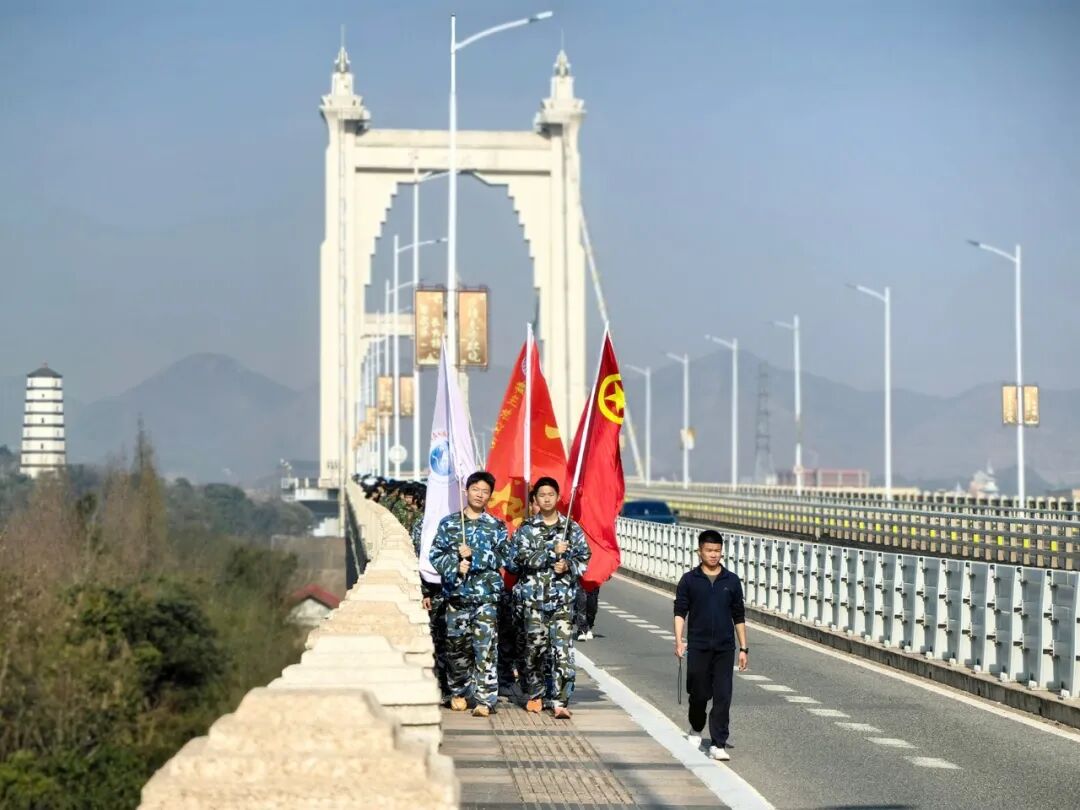 步履丈量高度,信念跨越远方。我们绵延的队伍成为了一道美丽的风景线。行进过程中,一路上都有学校教官、老师在身边陪伴和引导,还有学校后勤保障人员、医护人员一路同行,为学生的安全保驾护航。同学们穿过了乡间小道,感受田园宁静;跨越赣州大桥,领略醉人美景。行进过程中,同学们始终激情澎湃、队列整齐,展现出当代学生的青春阳光、昂扬向上的精神面貌。