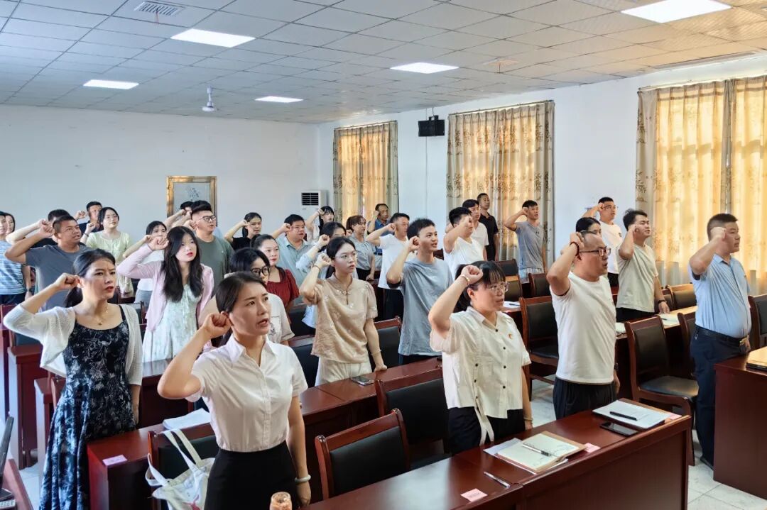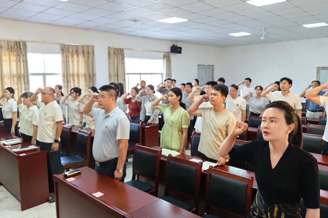会议在庄严的国歌声中拉开帷幕 , 全体与会人员庄严肃立,激昂的旋律回荡在会场。 随后, 教师宣誓中冯李平副校长领誓,句句誓言铿锵有力,展现了全体教师投身教育事业的坚定决心 。