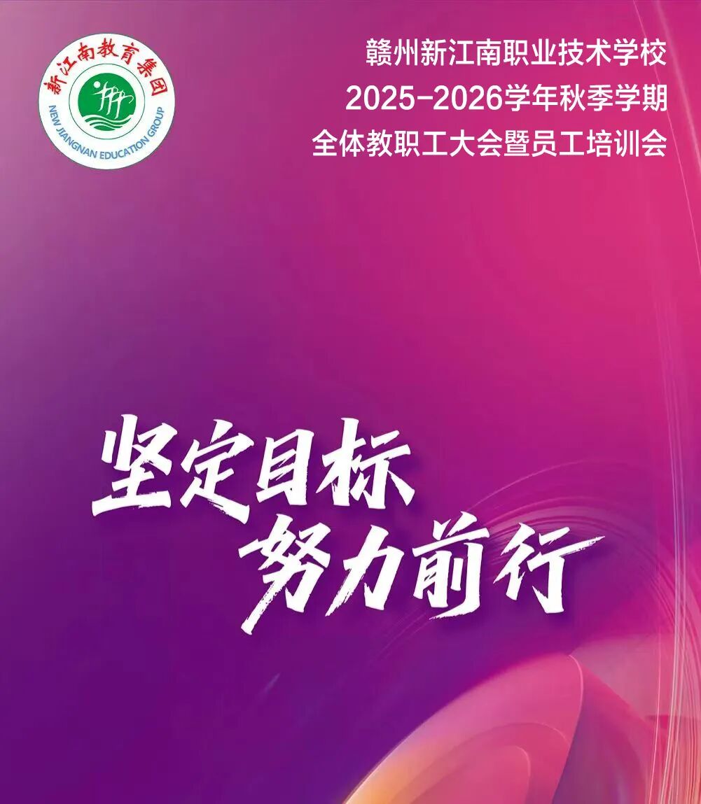 2025年8月29日上午,赣州新江南职业技术学校全体教职工齐聚报告厅,以饱满的精神状态迎来了秋季开学教职工培训大会,正式吹响了新学期的奋进号角。