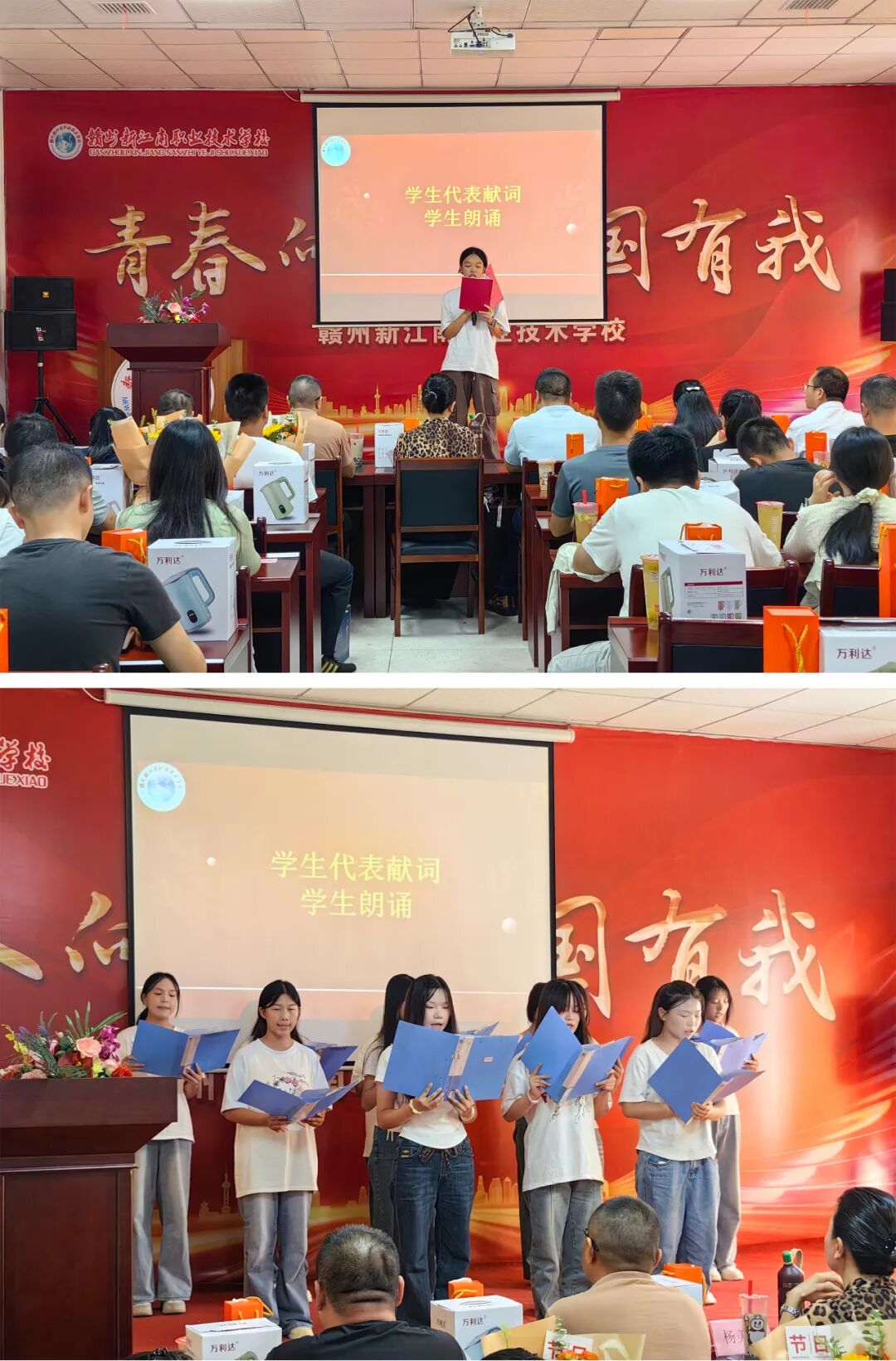 莘莘学子,感念师恩。学生代表李章赫同学深情献词,表达对老师们无尽的感激与祝福。随后,12名学生集体朗诵《感恩您,我的老师!》,用真诚的声音赞颂老师的辛勤付出,承诺将以勤奋学习、全面发展的实际行动回报师恩。