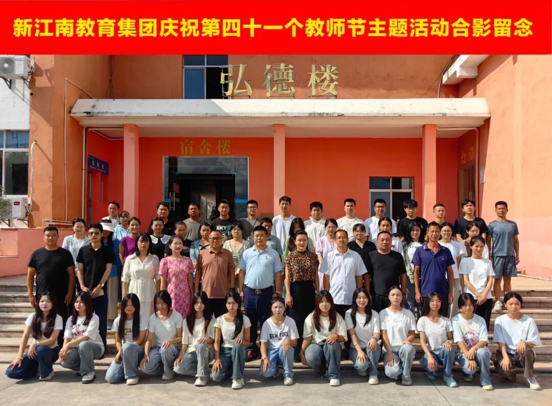9月10日,新江南教育集团隆重举行“以教育家精神铸魂强师 谱写教育强国建设华章”庆祝第41个教师节大会。新江南教育集团董事长、新江南职业技术学校校长刘世芳、新江南教育集团副董事长杨美红、新江南职业技术学校副校长赵佳艳、副校长余艳平、副校长冯李平等行政班子、全体教师及学生代表齐聚一堂,共同庆祝这个属于教育工作者的光荣节日。大会由集团办公室主任颜克兰主持。
