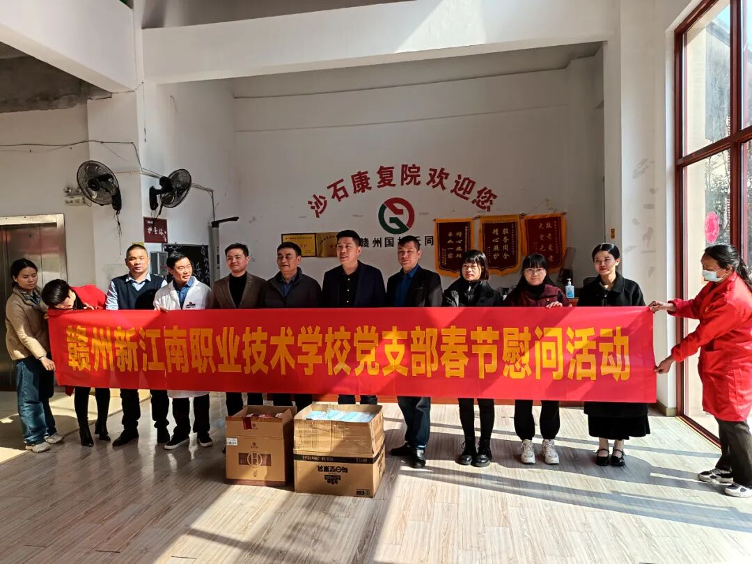 在蛇年春节即将来临之际,为弘扬中华民族尊老敬老的传统美德,2025年1月23日上午,由章贡区民政局牵头组织,携手社会组织走访慰问公办养老机构活动,在章贡区民政局二级主任科员、社会组织党委书记王琳的带领下,赣州新江南职业技术学校党支部联同赣州市章贡区中小微企业服务中心党支部、赣州市章贡区公务员小区幼儿园一同前往章贡区养老服务中心、章贡区国投天同沙石康复院开展走访慰问活动,为老人们送去了温暖与关怀。